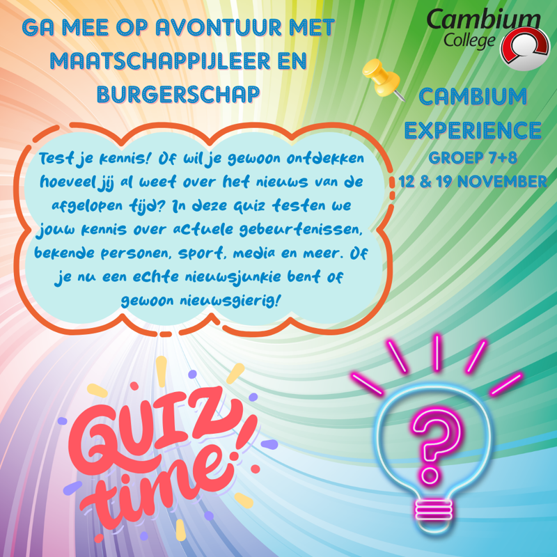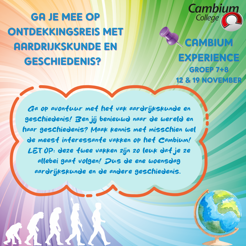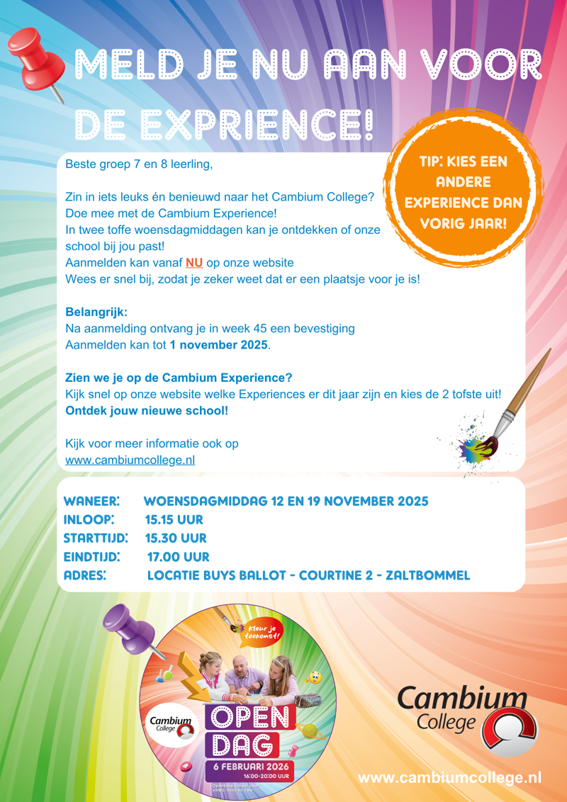 Zin in iets leuks én benieuwd naar het Cambium College? Doe mee met de Cambium Experience! In twee toffe woensdagmiddagen kan je ontdekken of onze school bij je past.