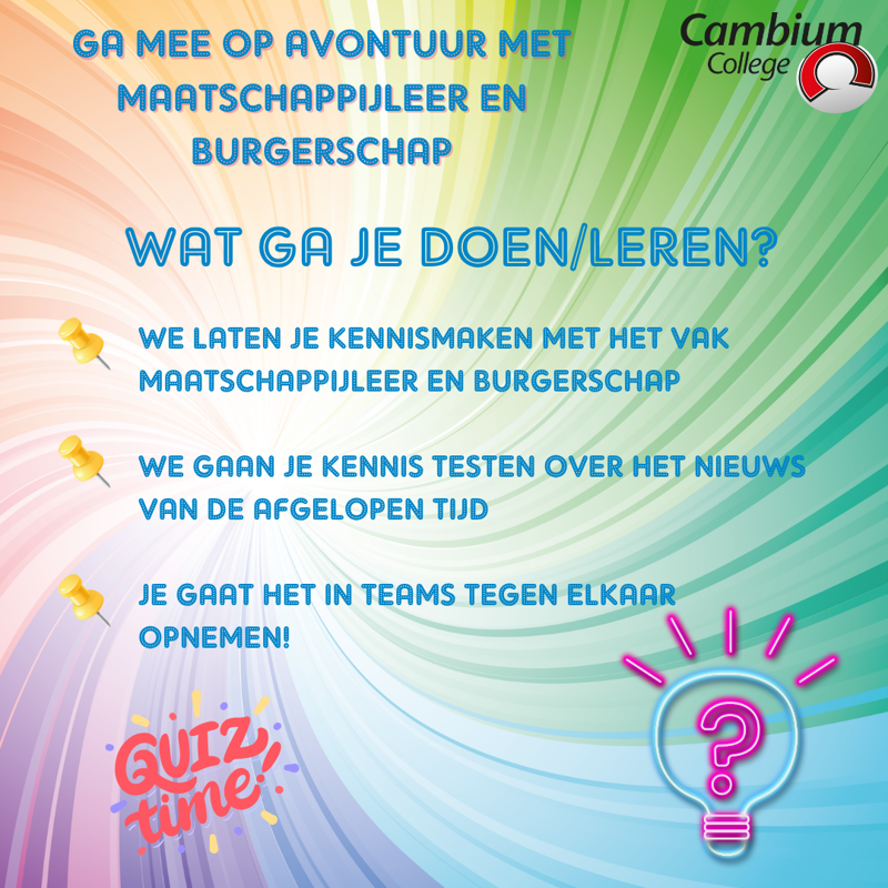 Die kun je stellen door een mailtje te sturen aan onze brugklascoördinatoren mevrouw Heimans, mevrouw Van Wijk of meneer Egberts, brugklascoordinatoren-bb@cambiumcollege.nl.